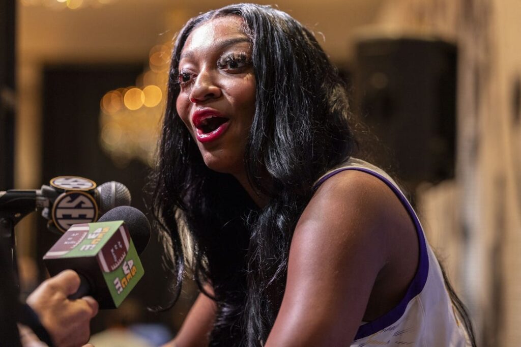 Angel Reese scored 28 points and grabbed 14 rebounds as No. 1 LSU rebounded from a season-opening loss to smash Queens University 112-55 on Thursday in its home opener at…
