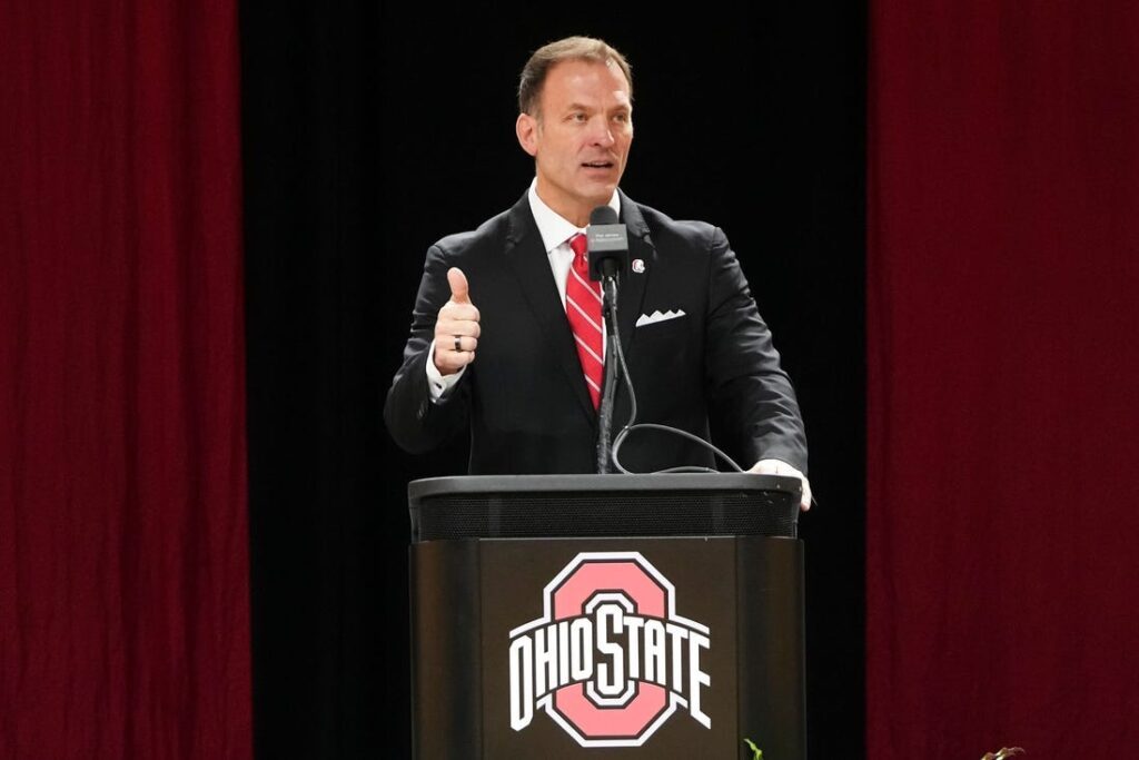 Ohio State introduced new athletic director Ross Bjork on Wednesday, and one of the first things he did was give football coach Ryan Day a vote of confidence.