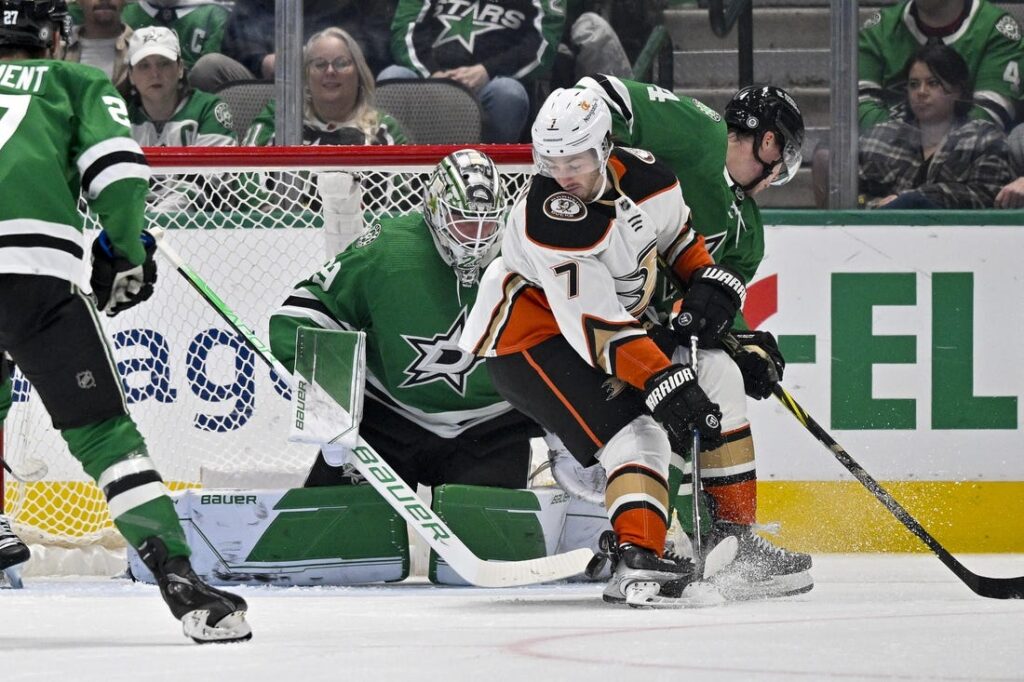 Denis Gurianov won the puck along the wall in the Ducks’ zone and centered a pass from just above the goal line to Hintz on the opposite post. Hintz redirected the puck high in the net.