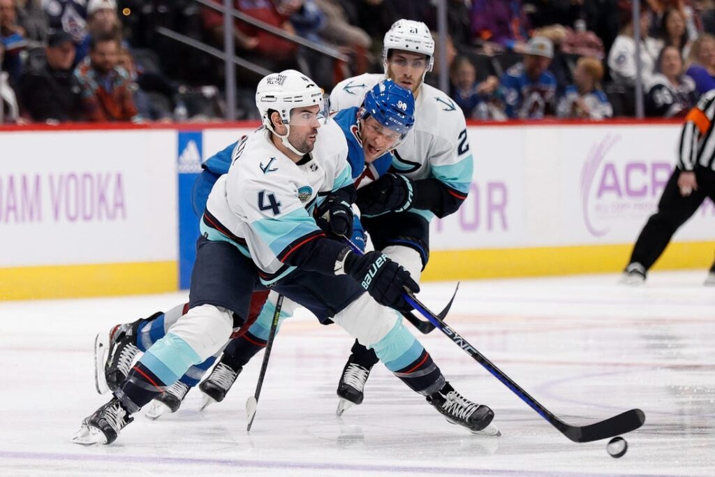 Oliver Bjorkstrand scored his second goal of the night with 31.6 seconds remaining, lifting the Seattle Kraken to a 4-3 win over the Colorado Avalanche on Thursday in Denver.