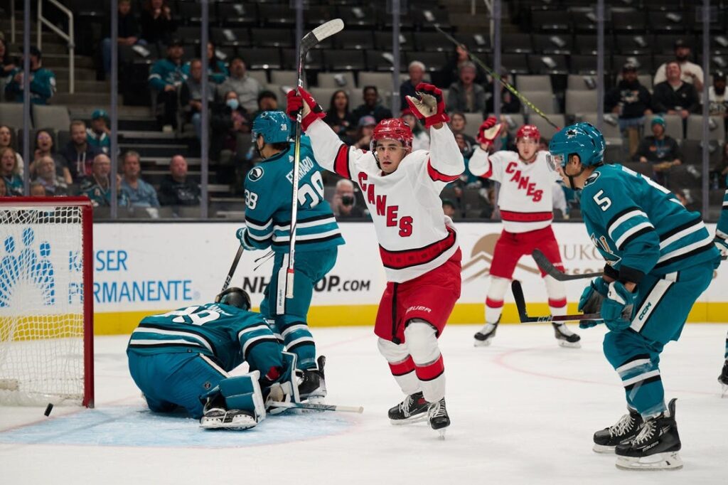Seth Jarvis scores twice, helps Canes rally past Sharks